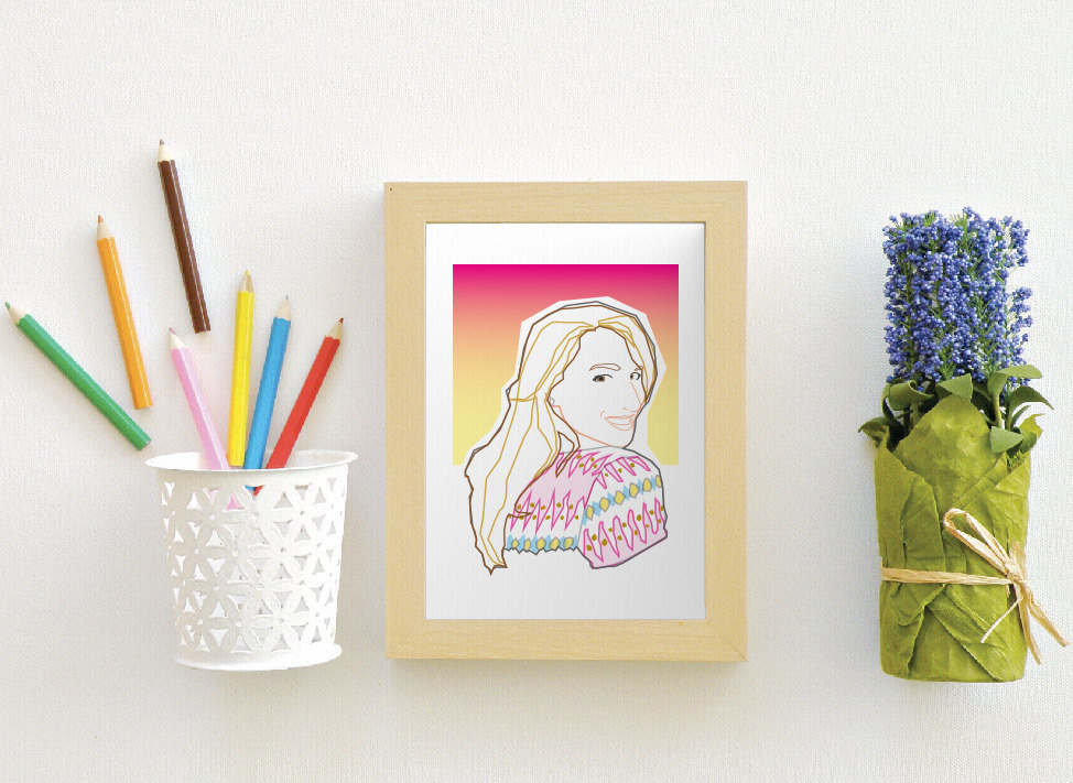 I'm portraying people, family and friends with less details possible. It's a funny exercise, more difficult than I imagined, focusing on few details and adding a personal touch to every single portrait, to enhance the personality of my subject.